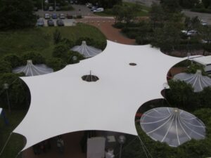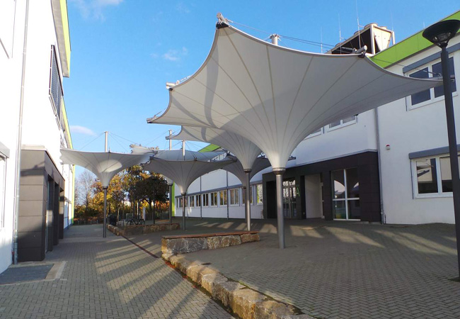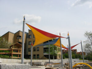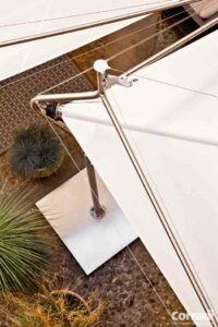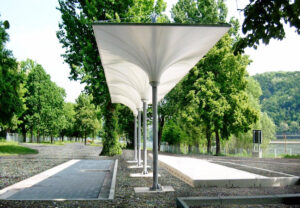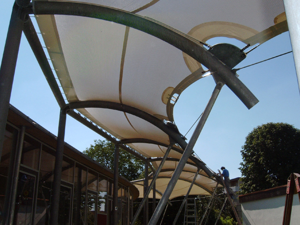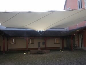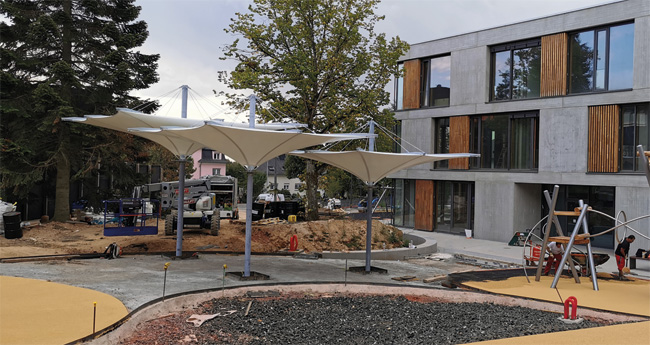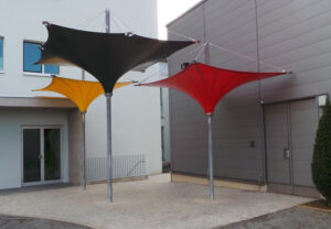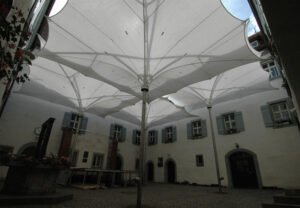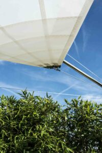 3 bis 4 Bilder allgemein für Texte. Motiv evtl. Nahaufnahme der Verarbeitung, Highlight-Bild für Textile Architektur und Sonnensegel.