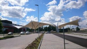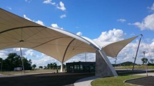 Für einen namhaften österreichischen Maschinenhersteller durften wir am neuen Standort in Vodnany (Tschechien) die Werkseinfahrt und Teile des Parkplatzes mit einem 2200qm großen Membrandach versehen. Die Anforderung nach einer funktionalen und zugleich optisch ansprechenden Lösung konnten wir mit großer Freude erfüllen.