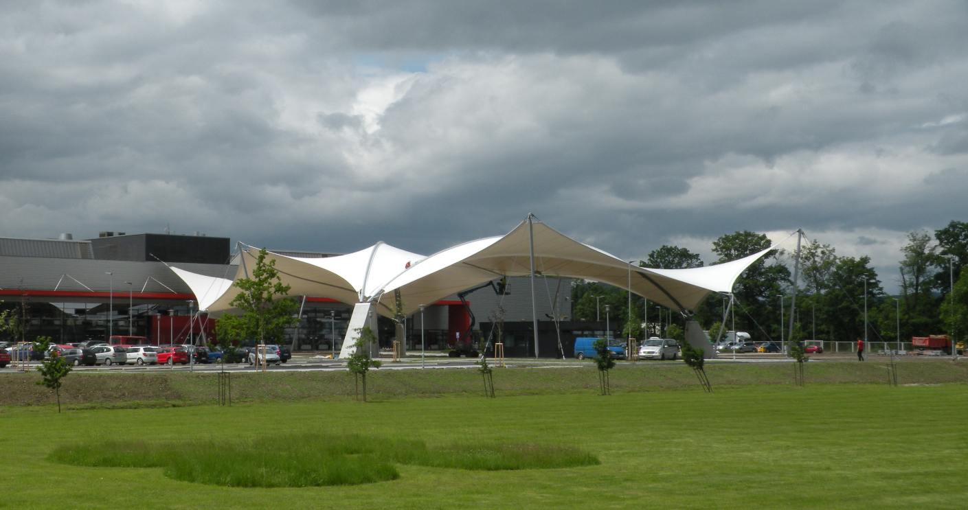 Für einen namhaften österreichischen Maschinenhersteller durften wir am neuen Standort in Vodnany (Tschechien) die Werkseinfahrt und Teile des Parkplatzes mit einem 2200qm großen Membrandach versehen. Die Anforderung nach einer funktionalen und zugleich optisch ansprechenden Lösung konnten wir mit großer Freude erfüllen.